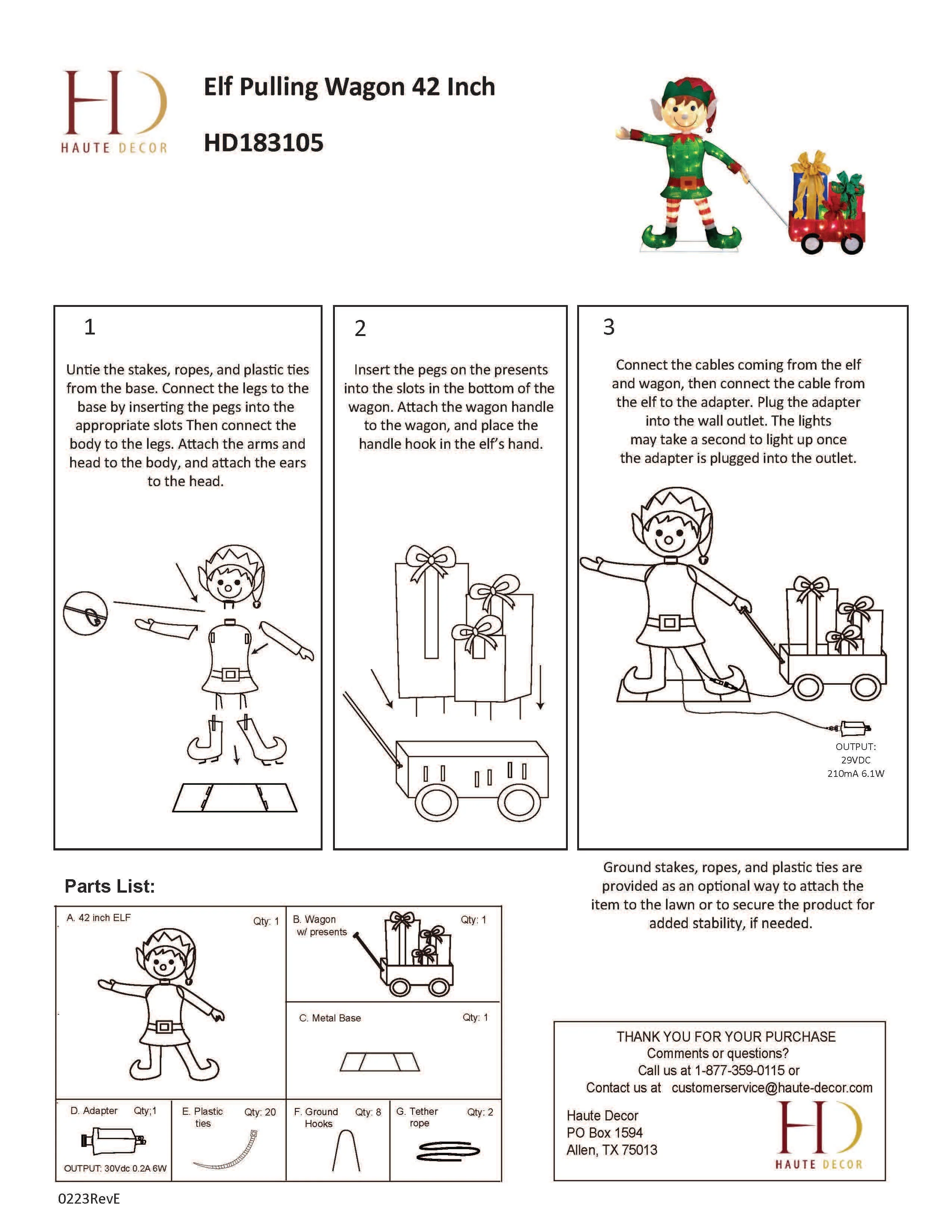 - Elf and wagon are wire framed and wrapped in a tinsel fabric that is built to withstand the winter conditions.