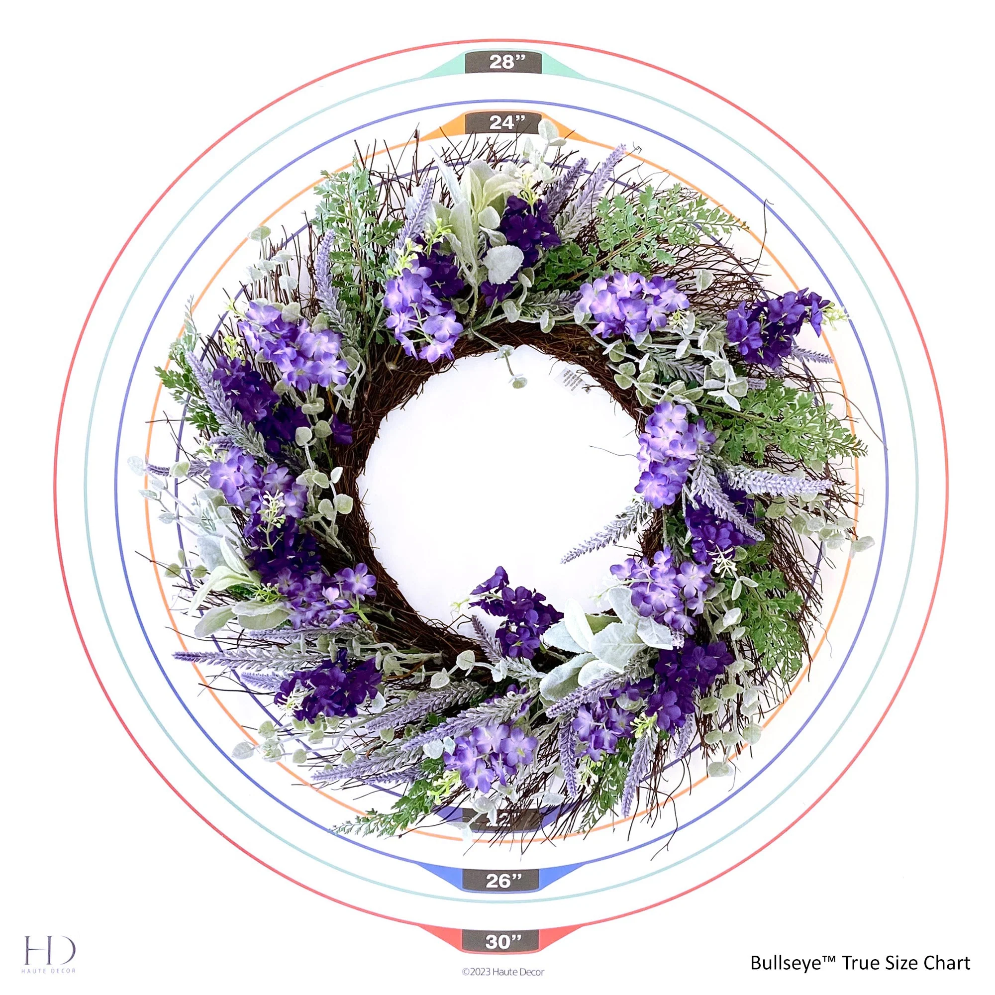 24 Inch Mixed Lavender/Larkspur Wreath—