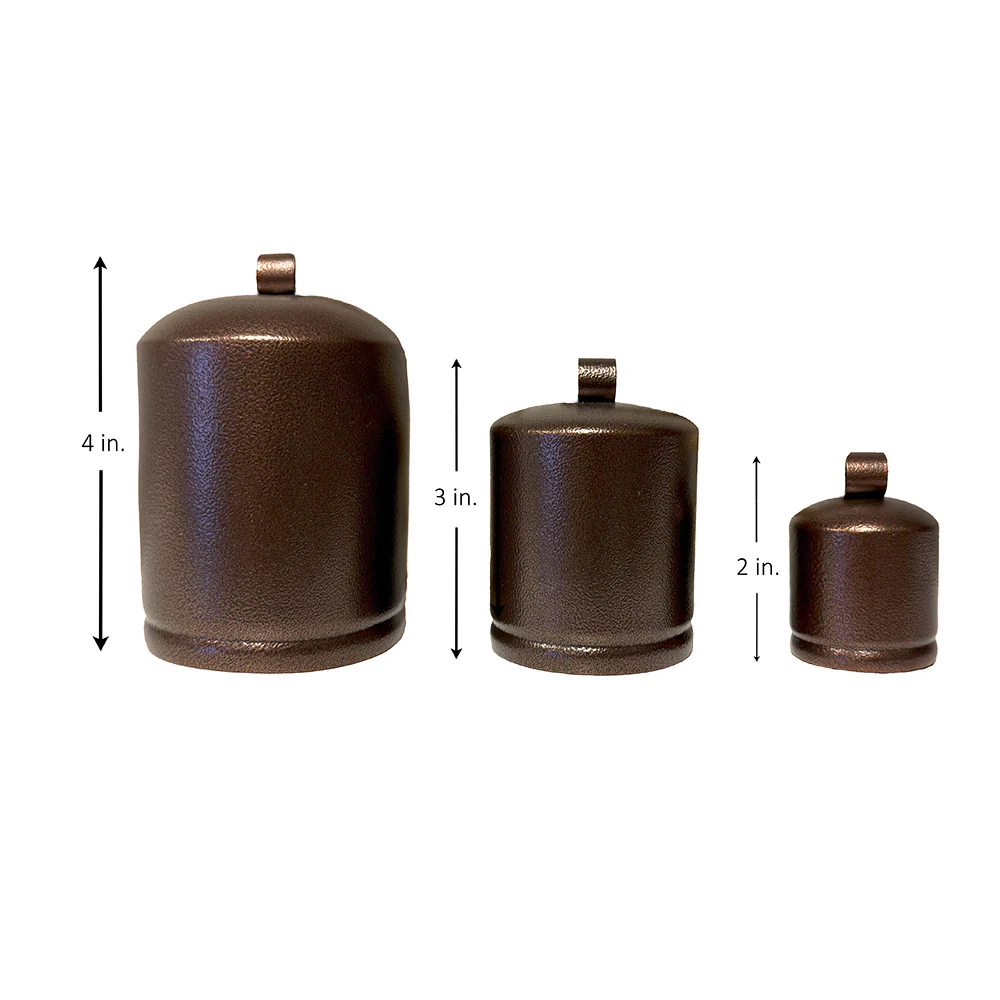Add a touch of modern rustic charm to your holiday decor with our Group of 3 Hanging Jingle Bells. This delightful set features three different sized cylindrical jingle bells. Choose between a rich antique bronze or a classic antique gold finish to complement your style. These unique bells offer a contemporary twist on traditional Christmas decorations, making them ideal for hanging from your mantel, adorning a staircase, or on your front door.